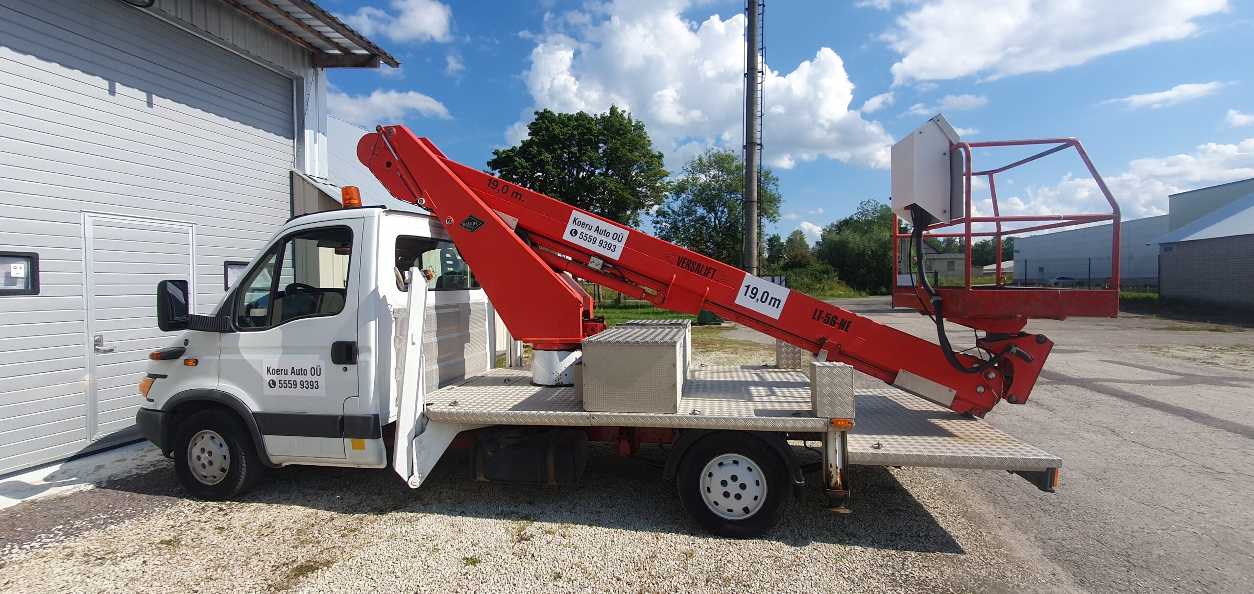 Korvtõstuki tõste kõrgus 19m. 1 tunni hind koos juhiga 32.-€ + km.